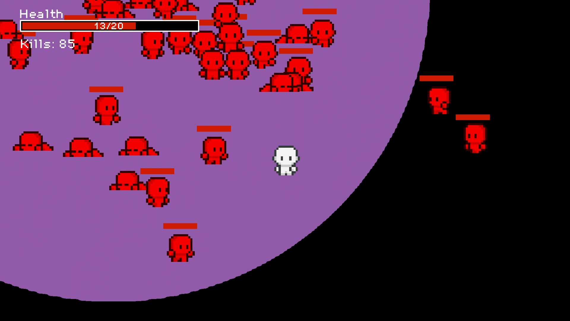 You're spawned in a dark world, where the only thing you can see is a light circle. You quickly realize that you're not alone as a red man follows you. When you kill him, you realize that he was not alone and soon the empty world will turn into a pile of red corpses. How long can you survive?